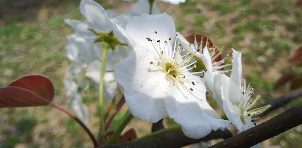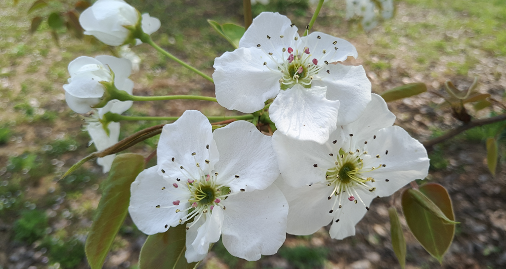 到这里,最主要的还是看梨花。百年梨园里的梨花,每到这个季节,开得最旺。蜜蜂时而在我们周围往来,它的勤劳和付出就是采出最甜的蜜,送给我们这些想念这里的人,今年的梨想必也是最甜的。